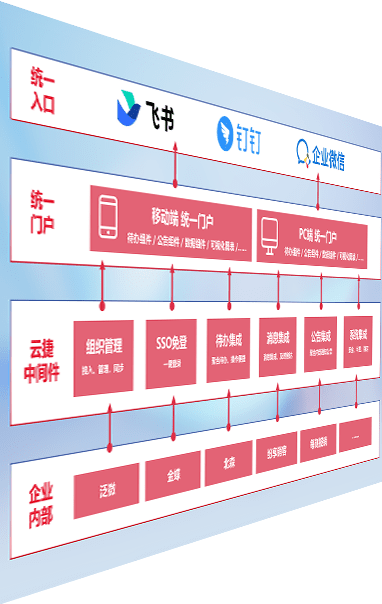 对协作平台提供支持服务,,,支持企业应用与协作平台对接,,,包含组织同步、、、、消息集成、、、、待办集成等。。支持目前主流的协作平台:钉钉、、企微和飞书。。。